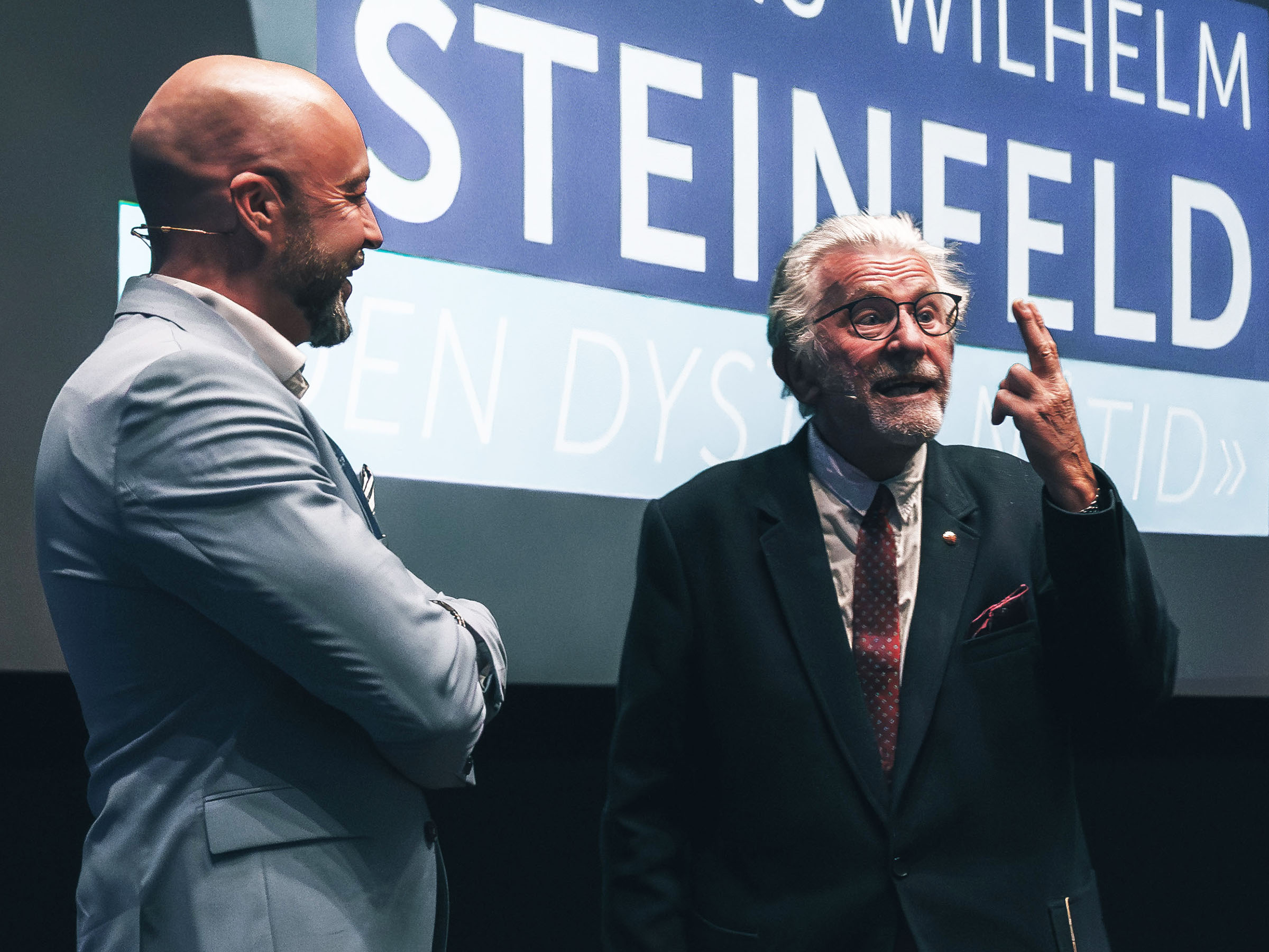 PRIVILIGERT: Frank Victor Valderhaugstrand har delt scene med en rekke store kapasiteter og personligheter. Her sammen med TV-legenden Hans-Wilhelm Steinfeld. Foto: Geir Bjørndal Srisoi